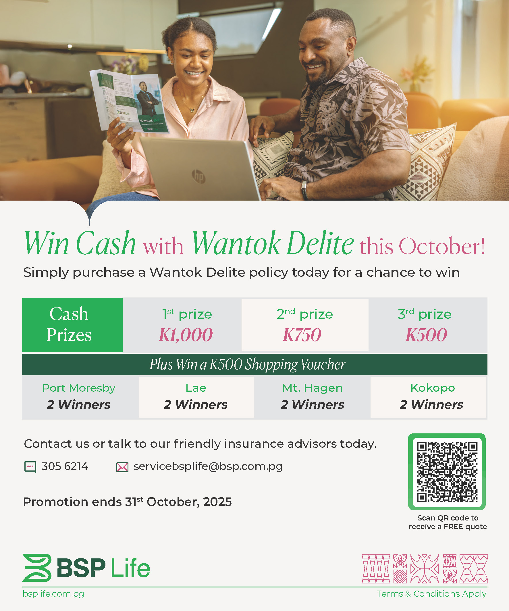 4. To enter the promotion, individuals must successfully sign up for the Wantok Delite Life Insurance Policy with BSP Life PNG Limited (BSP Life) during the promotion period. Successfully sign up means the customer has been issued the life insurance policy document.